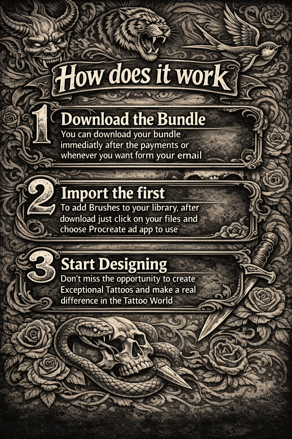 With this Procreate Tattoo Bundle, you create more, better, and faster without losing your unique style.